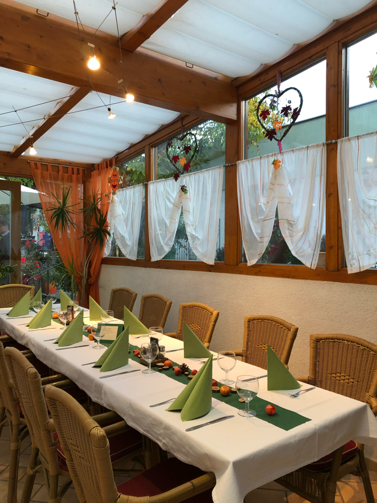 Sonnenstrom aus unseren Photovoltaikanlagen wärmt Ihre Speisen und kühlt Ihre Getränke. Eine Biomasseheizung bringt wohlige Wärme in unsere Räume.